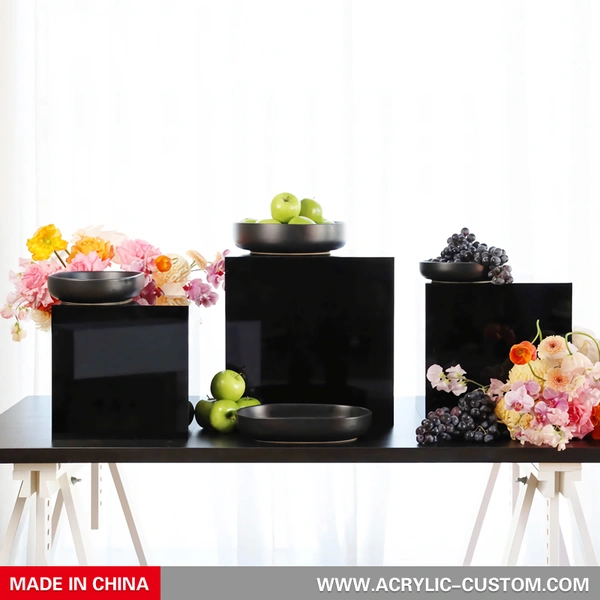 ブラック アクリル フード ディスプレイ ライザー アクリル キューブ ディスプレイ