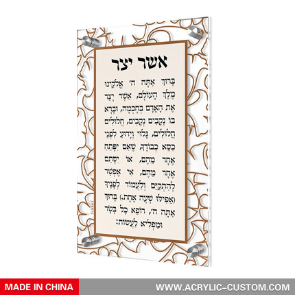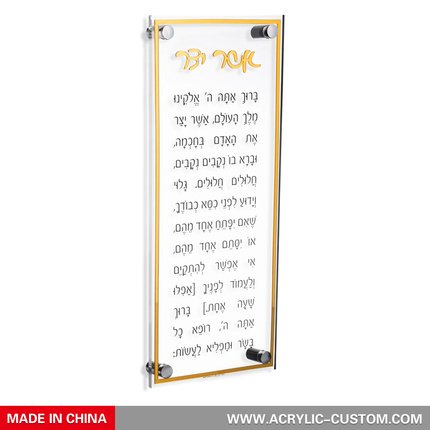 美しいアッシャー ヤツァルの壁掛け。魅力的な Lucite Asher Yatzar Sign であなたのスペースを強化しましょう。美しい Asher Yatzar のデザインは、どこにでも完璧に映えます。各プレートは丁寧に梱包され、美しい箱に入れられているので、すぐにプレゼントできます。