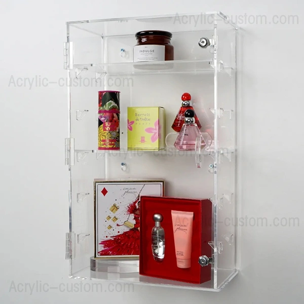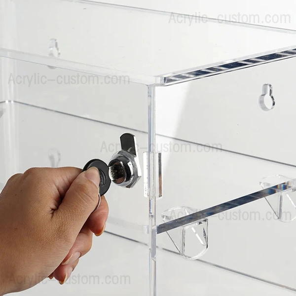 キーロック付き透明アクリルショーケース - 壁掛けアクリルディスプレイケース