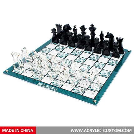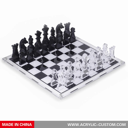 クリア/スモークグレー アクリル チェス セット - モダンなアクリル チェス盤