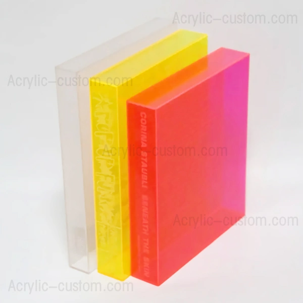 アクリル スリップ ケースは、本、マーケティング資料、書類を収納する素晴らしい方法を提供し、エッジ グロー アクリルの視覚的な魅力とともに、実体と重量を与えます。このカバーは、赤いエッジの光るアクリルから作られ、切り出されて形に接着され、前面にロゴがエッチングされています。