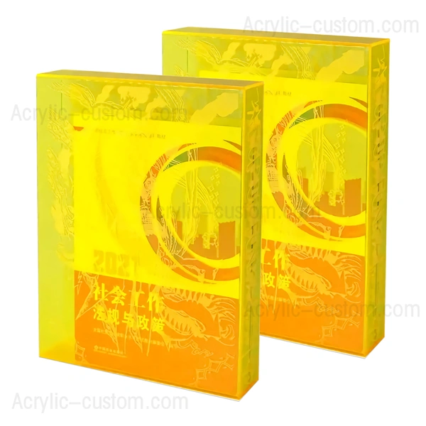 アクリル スリップ ケースは、本、マーケティング資料、書類を収納する素晴らしい方法を提供し、エッジ グロー アクリルの視覚的な魅力とともに、実体と重量を与えます。このカバーは、赤いエッジの光るアクリルから作られ、切り出されて形に接着され、前面にロゴがエッチングされています。