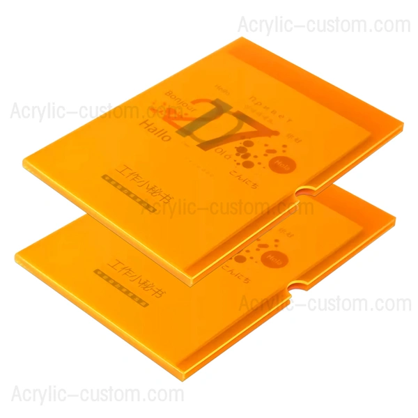 アクリル スリップ ケースは、本、マーケティング資料、書類を収納する素晴らしい方法を提供し、エッジ グロー アクリルの視覚的な魅力とともに、実体と重量を与えます。このカバーは、赤いエッジの光るアクリルから作られ、切り出されて形に接着され、前面にロゴがエッチングされています。