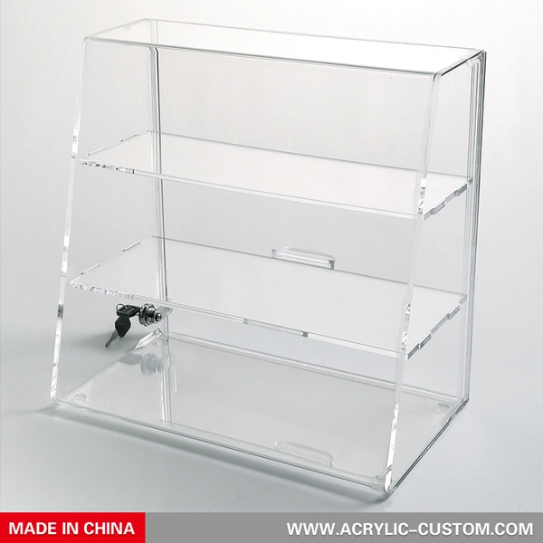 アクリル製ディスプレイケース - このケースは自宅や展示会で使用できます。これらのすべてアクリル製カウンタートップ ケースには、2 つのキーが付いたカム ロックが含まれています。これらの陳列ケースは、ロック付きドアを店員または顧客のどちら側に向けても使用できます。