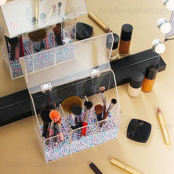 メイクアクリル主催者は、あなたのメイクブラシを格納するための究極のソリューションです。3つのブラシコンパートメントとふたが特徴で、メイクアップブラシを清潔に保ち、見やすく、スペースを最大限に活用できます。