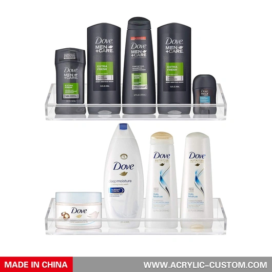 透明アクリル壁掛けバスルームフローティングディスプレイシェルフ、バストイレタリー用クリアシェルフ収納