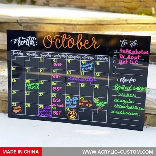 アクリル壁カレンダー プランナー - パーソナライズされた黒のカレンダー ボード